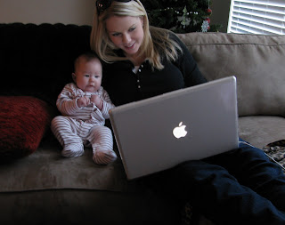 We are getting excited about Christmas around our house! It is so much more fun this year having Avery around for Christmas. We decided to decorate this weekend and it was so much fun putting the tree up and hanging Avery's first ornaments. She loved looking at all the lights on the tree. She also had a fun time with a visit from aunt Laura this weekend!